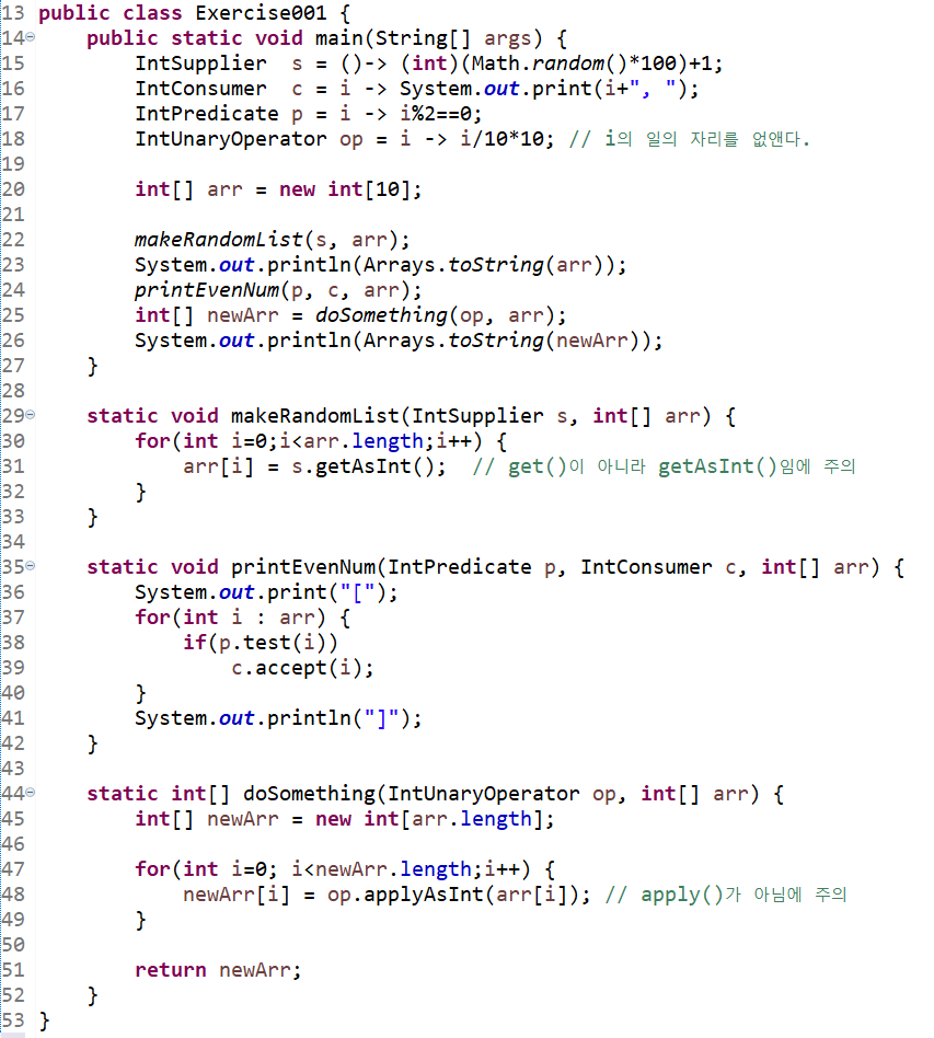- 이 패키지에는 일반적으로 자주 쓰이는 형식의 메서드를 함수형 인터페이스로 미리 정의해 놓았다.