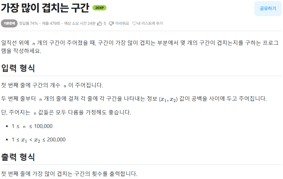 연습문제 - (코드트리) 가장 많이 겹치는 구간